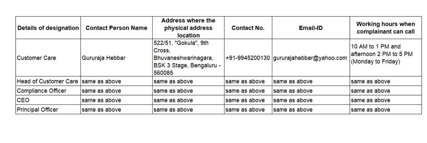 Principal Officer and Compliance Officer: Gururaja Hebbar
