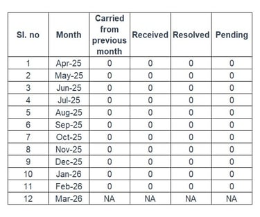 * Inclusive of complaints of previous months/years resolved in the current month/year