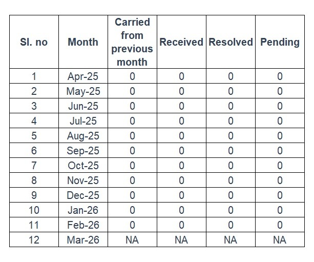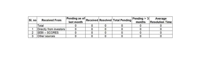 SEBI mandates all RIAs to display the status of the complaints on the website as shown below. Investors can first contact the intermediary in case of complaints, in our case through the Contact page. If you are still not satisfied, the grievance can be lodged with SEBI at SCORES (https://scores.sebi.gov.in)