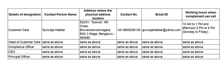 Registered address: #522/51, "Gokula", 9th Cross, Bhuvaneshwarinagara, BSK 3 Stage, Bengaluru - 560085